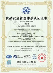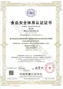 食品安全管理體系-認證證書 食品安全管理體系-認證證書